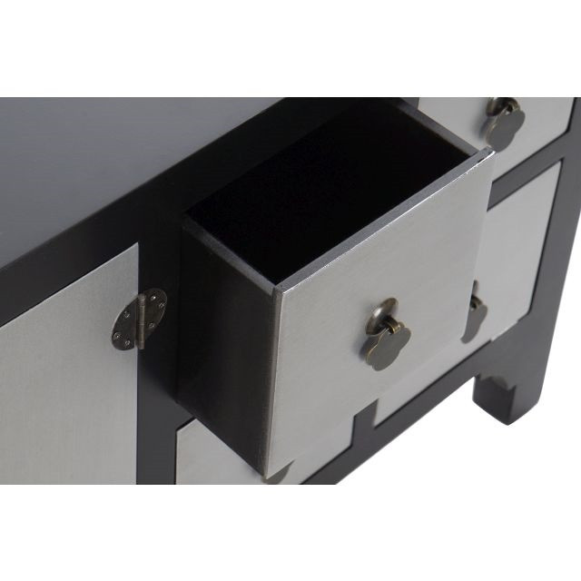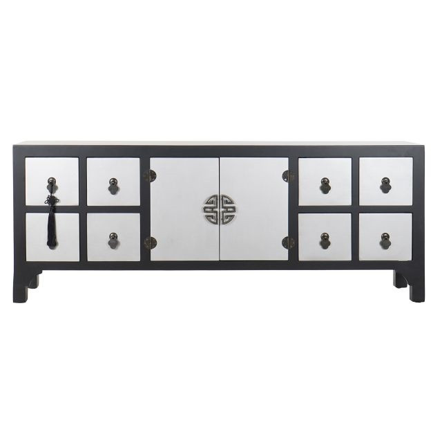 Tv-s szekrény keleti lucfenyõ, mdf 130x24x51 cm fekete, ezüst