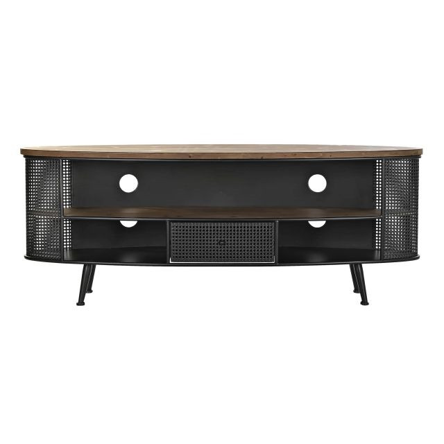 Tv-s szekrény lucfenyõ, fém 150x39x58 cm fekete, barna