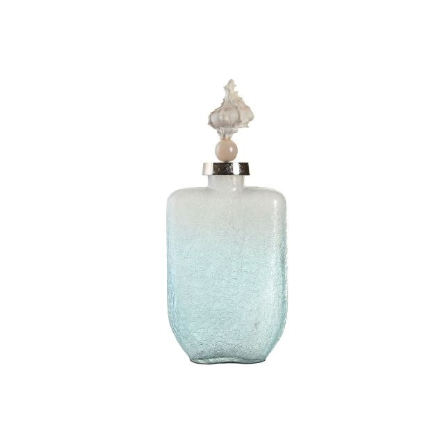 Váza kagyló üveg, alumínium 9x16x36 cm kék
