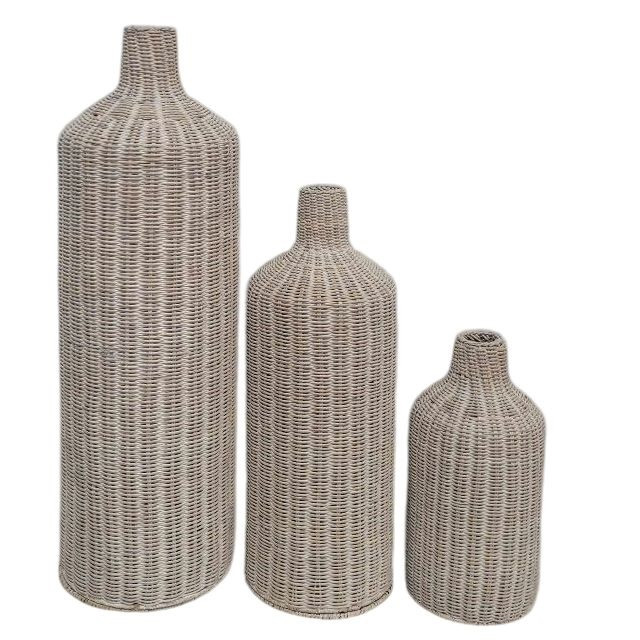 Váza szett rattan 25x25x80 cm törtfehér S/3