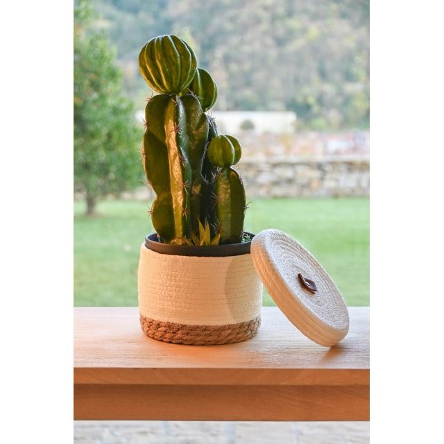 Selyemvirág kaktusz cserepes mûanyag, polipropilén 19x18x47 cm zöld