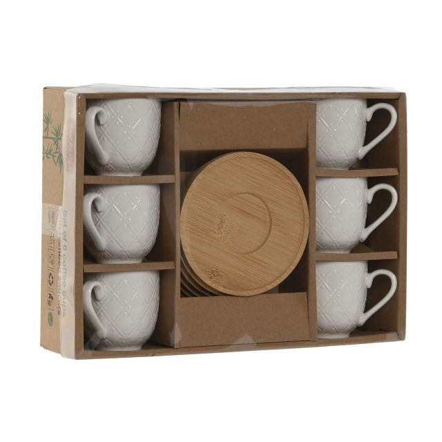 Kávés szett 90 ml porcelán, bambusz 10,5x10,5x0,8 cm fehér S/6