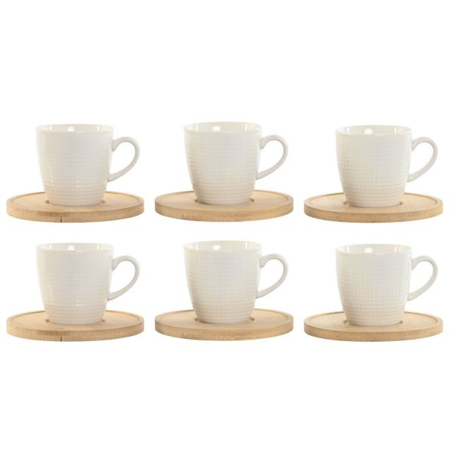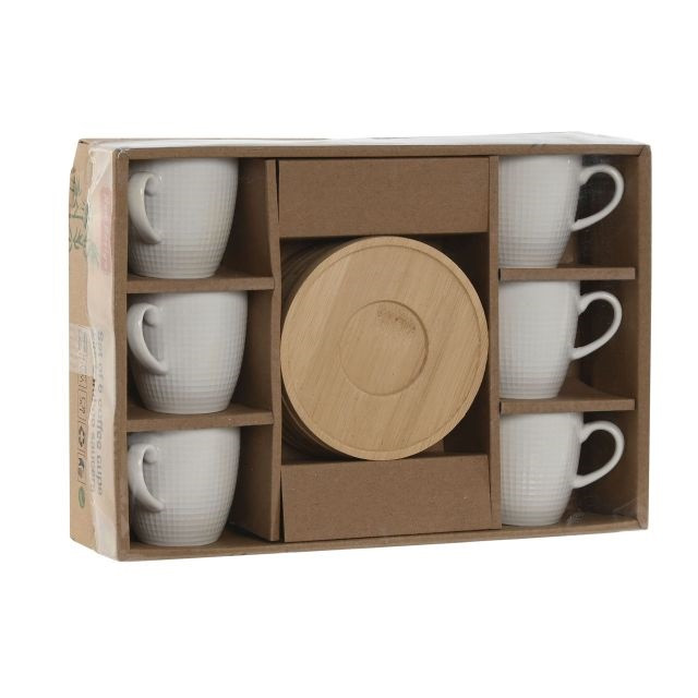 Kávés szett 90 ml porcelán, bambusz 10,5x10,5x0,8 cm fehér S/6