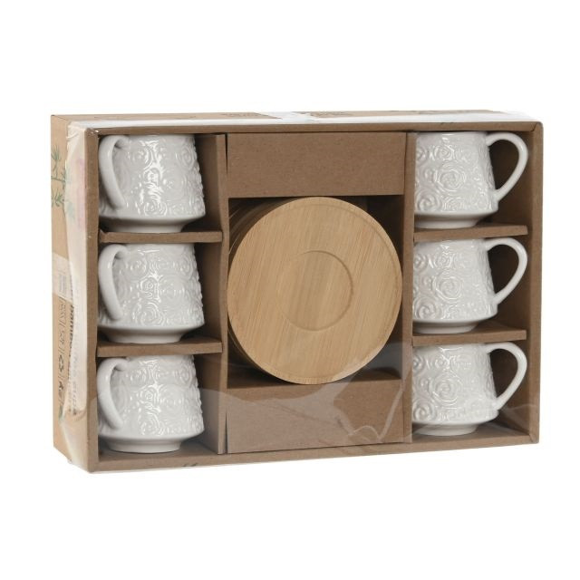 Kávés szett 90 ml porcelán, bambusz 10,5x10,5x0,8 cm fehér S/6