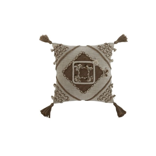 Párna rojtos pamut, juta 45x0x45 cm törtfehér, natúr